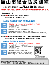 福山市では2025年(令和7年)11月23日(日曜日)9時00分から「南海トラフ地震」を想定した市内一斉の避難訓練を実施します。
